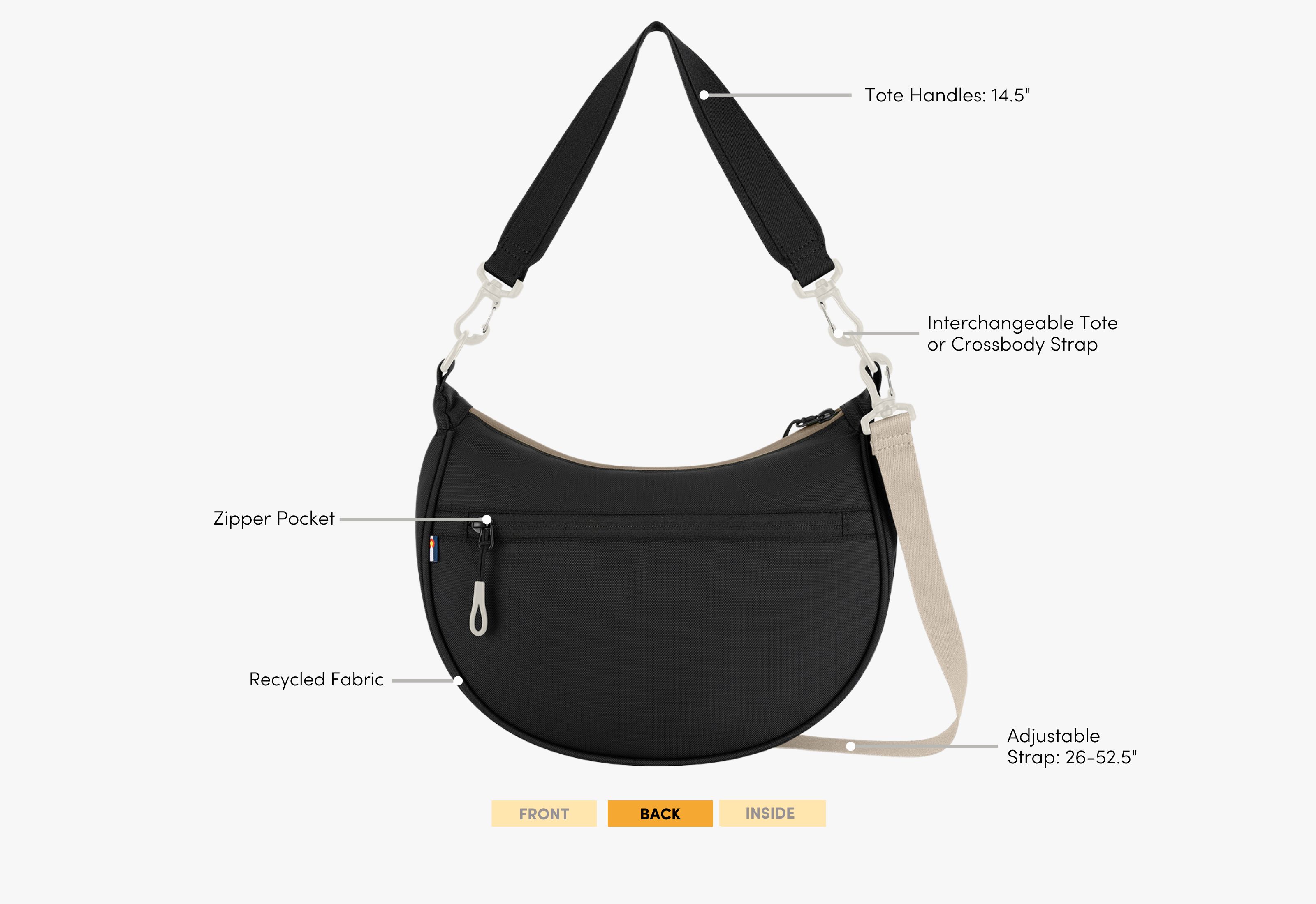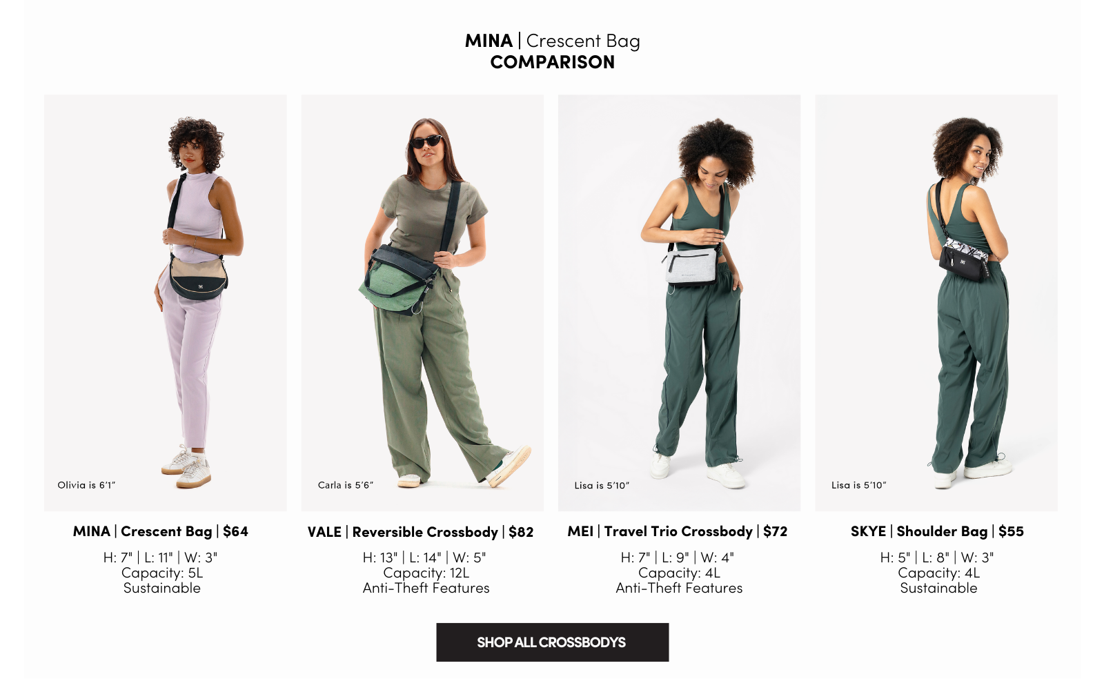 Meet the Mina, our chic new crescent bag! From the trendy half-moon silhouette to the interior organization to the two included strap options, the Mina will help you take on the world (or your Monday).