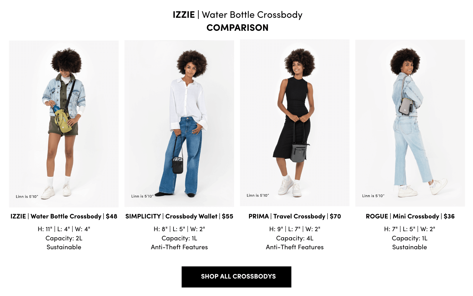 - --- CUSTOMER REVIEW ENTRY ---Review Title: EVERYONE NEEDS ONE!!! Customer Rating: 5 out of 5 stars (Excellent) Reviewer Name: Shelly G. (Verified Purchase) Review Date: 2025-09-29 Customer Feedback: We are in the middle of a fall RV get away, with most of our time being outdoors hiking, etc. I LOVE this water bottle crossbody, & give it 5 ⭐️'s 👍 I have said for years that someone should make a small bag of some kind to carry your water bottle, iPhone, and a couple of necessary essentials, not as big as a back pack. The moment I saw that Sherpani was making one I knew I would be ordering it. I told my husband that he needs one! GOOD ON YOU, SHERPANI‼️ --- END CUSTOMER REVIEW ---